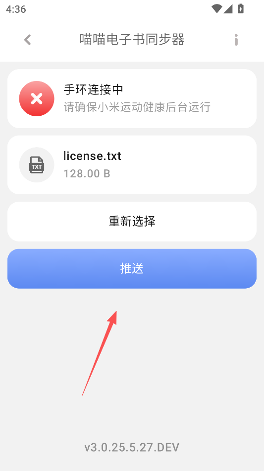 第一个主打功能是“电子书跨设备无缝同步,内容传输零门槛”。核心功能就是实现手机和小米手环之间的电子书传输,在手机上选好要同步的书籍,点击“开始同步”就能自动传到手环,不用手动复制粘贴文件。支持常见的电子书格式,比如TXT、EPUB,不管是自己下载的电子书,还是阅读APP里导出的文件,基本都能同步,传输过程简单又高效。